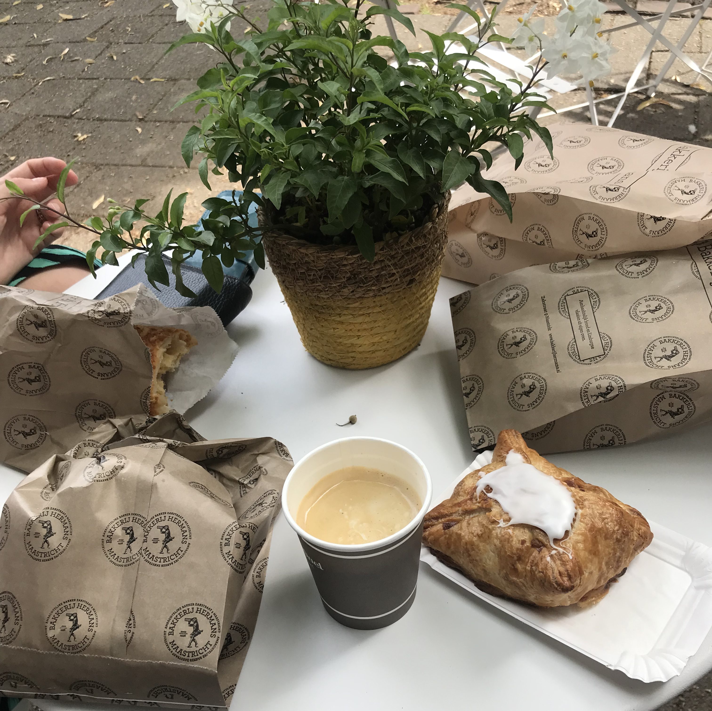 Wer etwas Niederländisches frühstücken möchte, dem ist eine der Bäckereien zu empfehlen. Dort bekommst du Vlaai, einen typisch limburgischen Kuchen, gefüllt mit orangefarbenem oder rotem Früchtekompott. Besonders die Bäckerei Hermans hat tollen Vlaai. Die Bäckerei liegt etwas versteckt inmitten von Wohnhäusern. Unten siehst du ein paar Eindrücke.